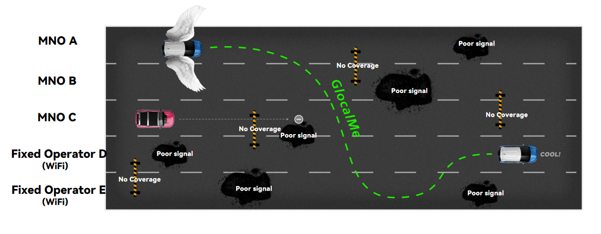 超級連接監控系統將使用AI演算法,根據您當前的位置、互聯網使用情況和所有寬頻的性能來確定最有效的可用網路覆蓋範圍。 超級連接將採用不同的路由策略,並不停切換到性能最佳的網路。這種跨越不同級別的障礙物,允許多個寬頻信號不僅作為備用,而且可以充分利用以實現最佳性能,就像汽車終於能夠利用高速公路上所有可用的車道而無需停車繳費和避開路障一樣。